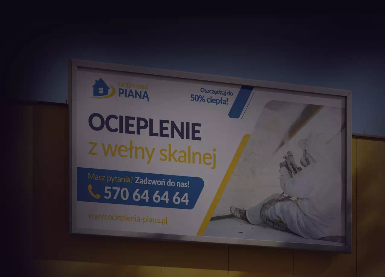 Śląsk to region o dużej liczbie firm oferujących usługi budowlane. Należało stworzyć baner, który wyróżni firmę „Ocieplenia Pianą” na tle konkurencji, podkreślając doświadczenie i profesjonalizm jako kluczowe wartości.